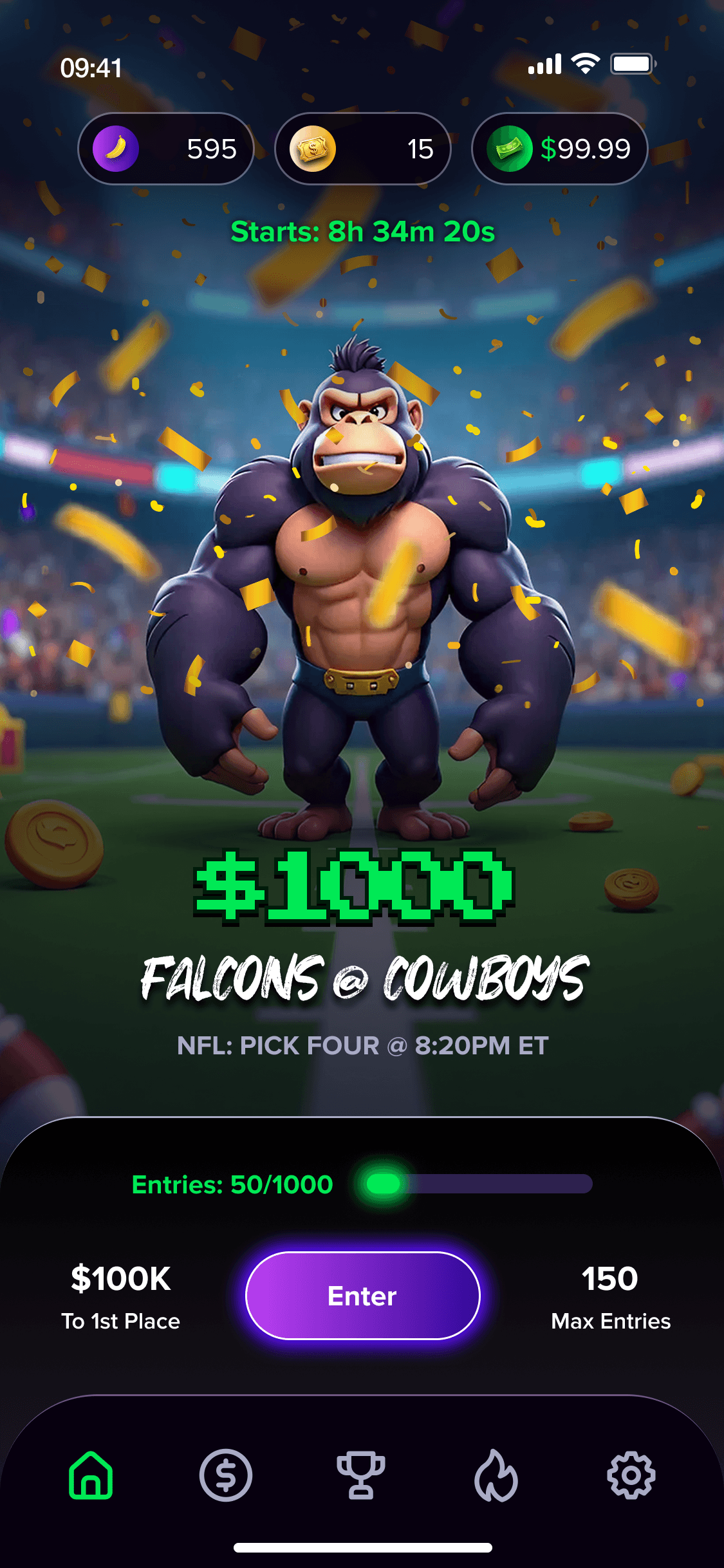Downloaded this app and love the action! Keep winning and gaining bananas. Gives me another reason to watch ball games.